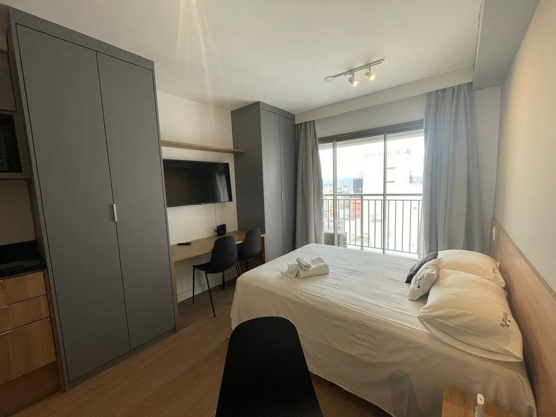 São studios mobiliados, com cozinha equipada, Wi-Fi rápido, cama e enxoval padrão de hotel, amenities exclusivos e serviços sob demanda.