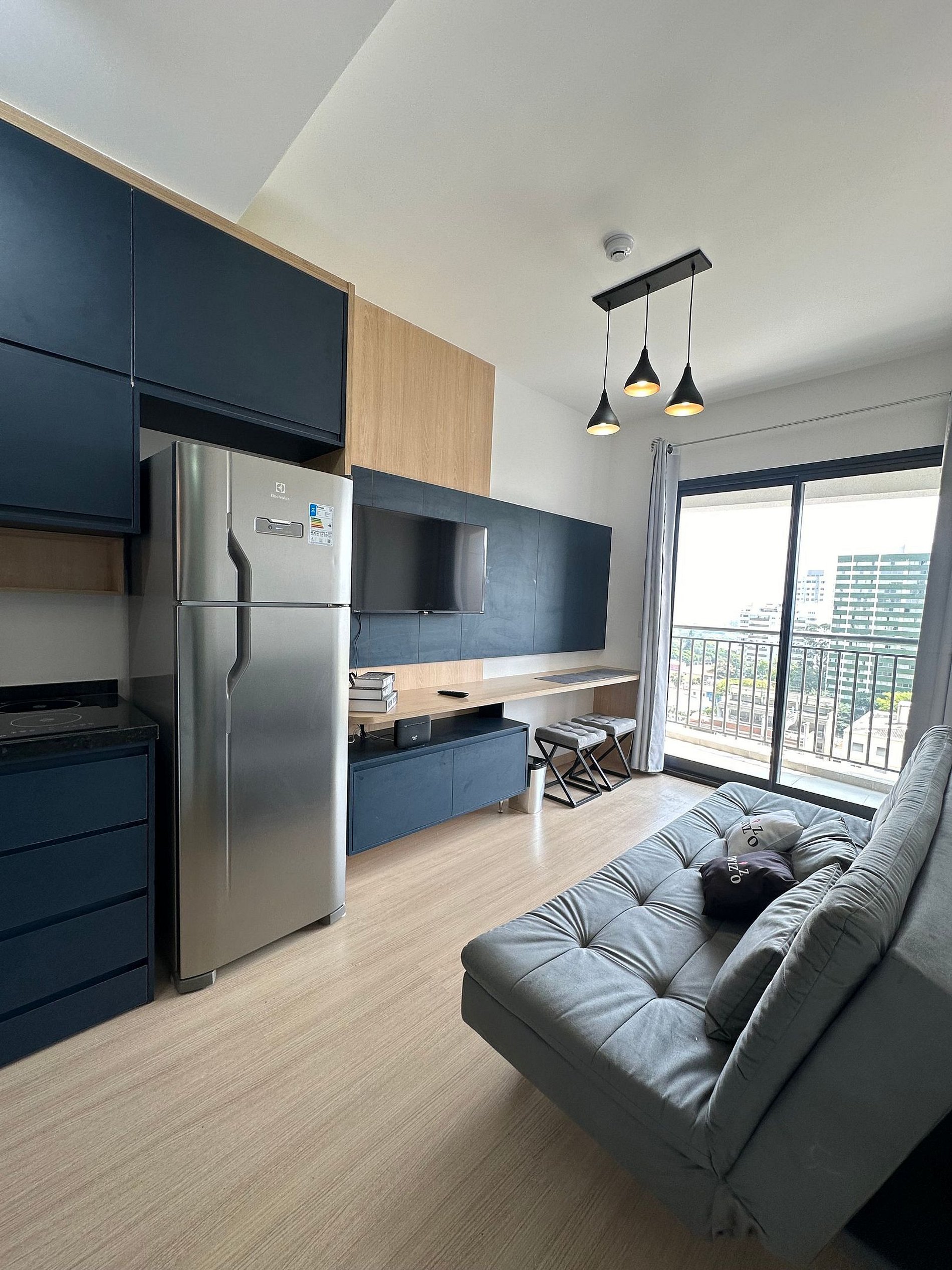 Studio novo com quarto e sala sendo uma cama de casal e um sofá cama. 500m (5min a pé) metrô Borba Gato