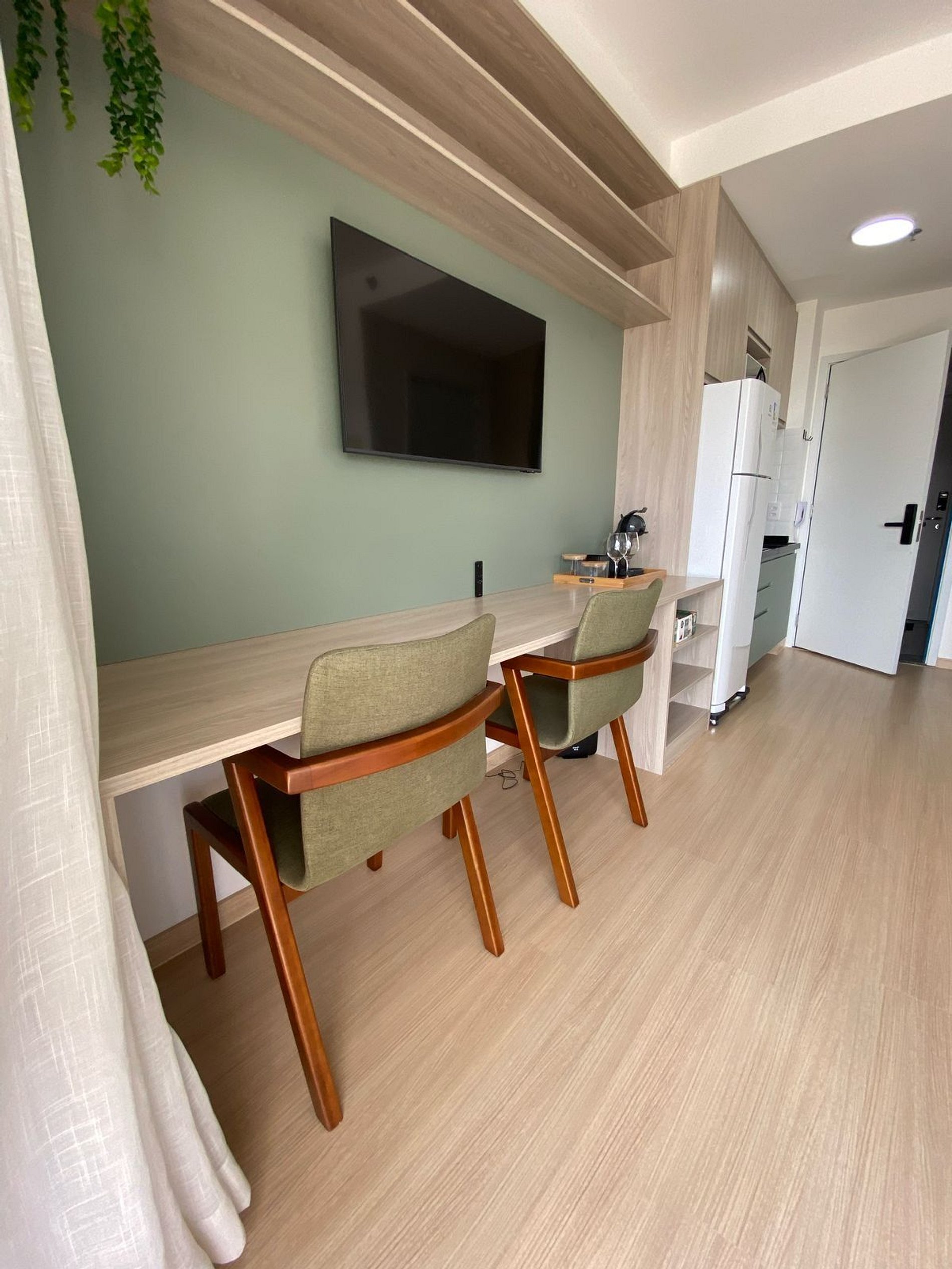 Studio novo com quarto e sala integrados, equipado com cama de casal e sofá-cama. Localizado a 500 m do metrô Borba Gato (5 minutos a pé). Conta com TV, Wi-Fi de alta velocidade e TV a cabo, além de enxoval completo com roupas de cama, toalhas e manta. Cozinha equipada com geladeira, cooktop, panelas e cafeteira. Condomínio com academia, espaço coworking e lavanderia. Acesso por fechadura eletrônica, garantindo total autonomia durante a estadia.