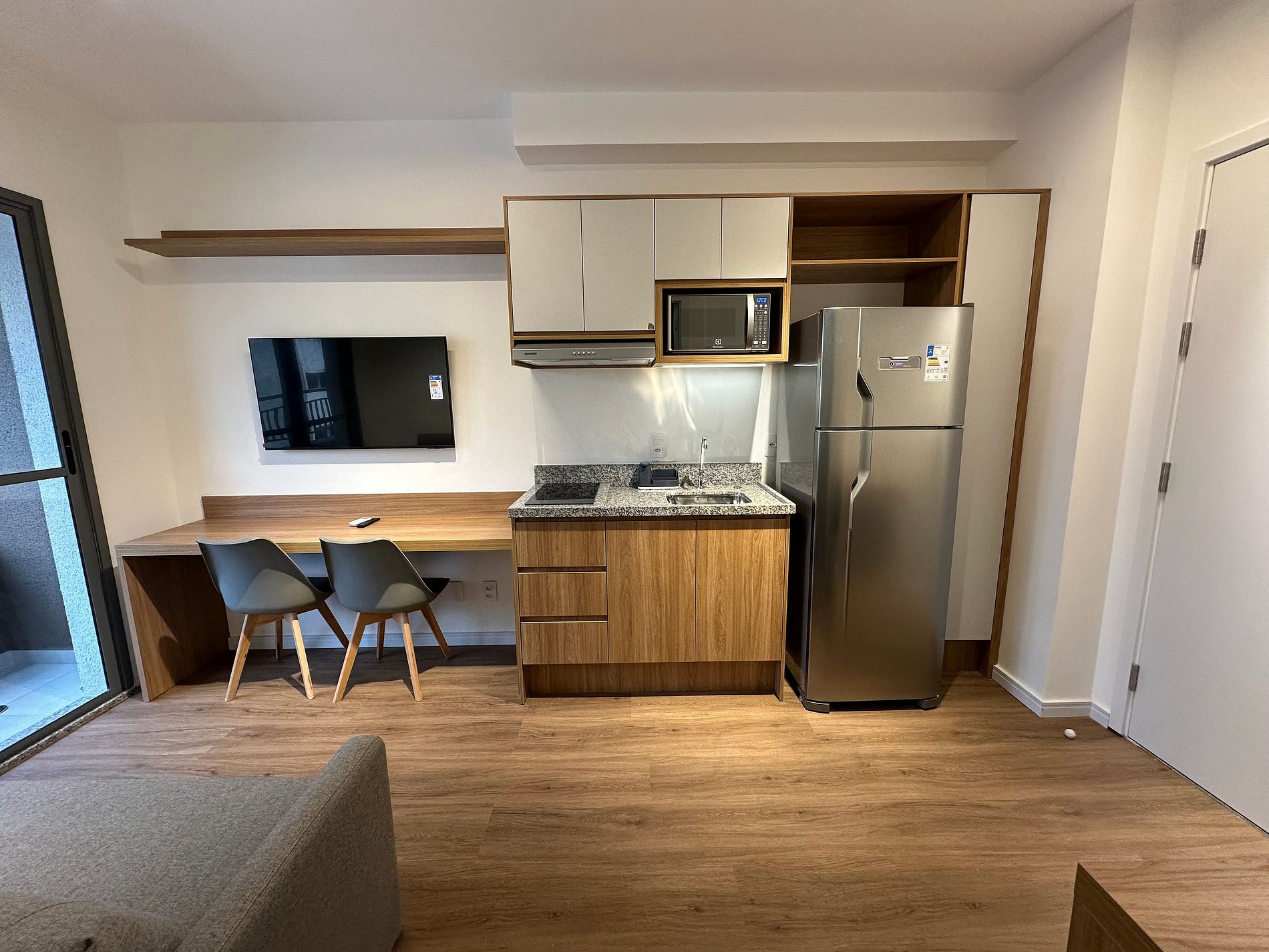O apartamento oferece um ambiente organizado, funcional e confortável, perfeito para estadias curtas ou médias, seja a trabalho ou lazer.