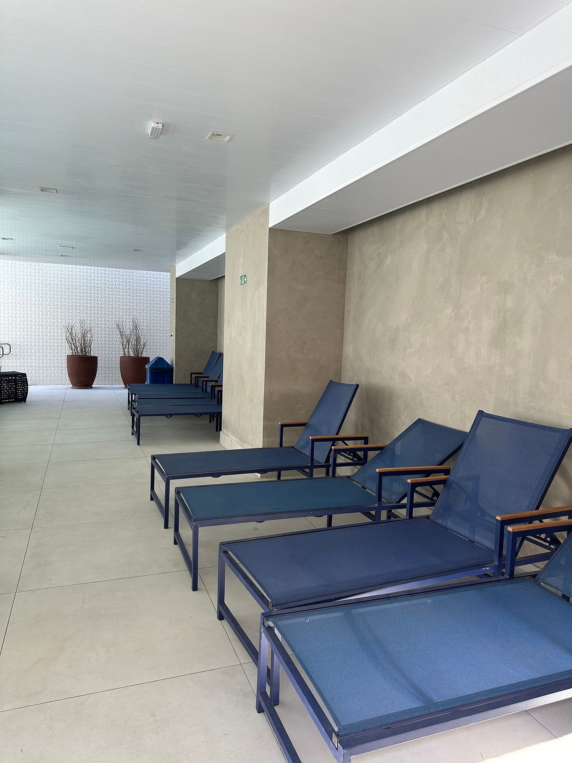 A piscina do TrevizZo Aeroporto de Congonhas! Foi projetada para aproveitar o espaço, faça chuva, faça sol. Para quem vive o cotidiano de uma cidade como São Paulo, é um refresco na rotina poder tirar um tempinho para nadar ou simplesmente relaxar no deck.
