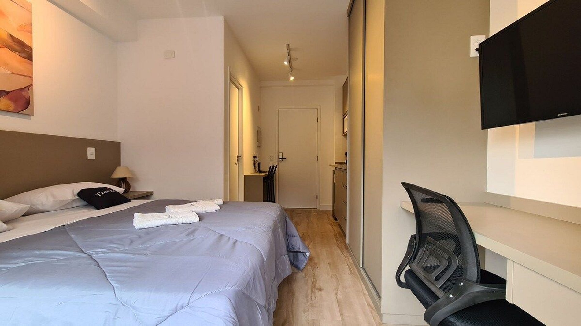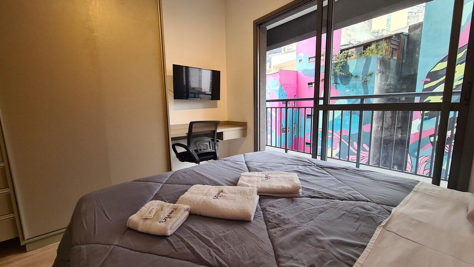 Temos unidades em todos os andares com todas as vistas. Essa unidade esta localizado no 7 andar com a vista de frente ao Copan e Terraço Italia. Cama de casal. Wifi ultra rápido. Maquina de café nespresso. Ar condicionado. Voce hospede da TrevizZo poderá usar: Piscina na cobertura. Academia no térreo 24horas. Sauna seca na cobertura. coworking no térreo com sala de reunião. Recepção 24horas. Espaço Boxe no térreo. Solarium com churrasqueira e mesa de jantar. Por do Sol maravilhoso.